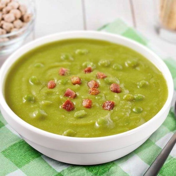 Creme de ervilha, temperado com alho, azeite, sal, caldo de legumes, chimichurry e calabresa picada. 500ml Prato pronto, não alteramos ingredientes.