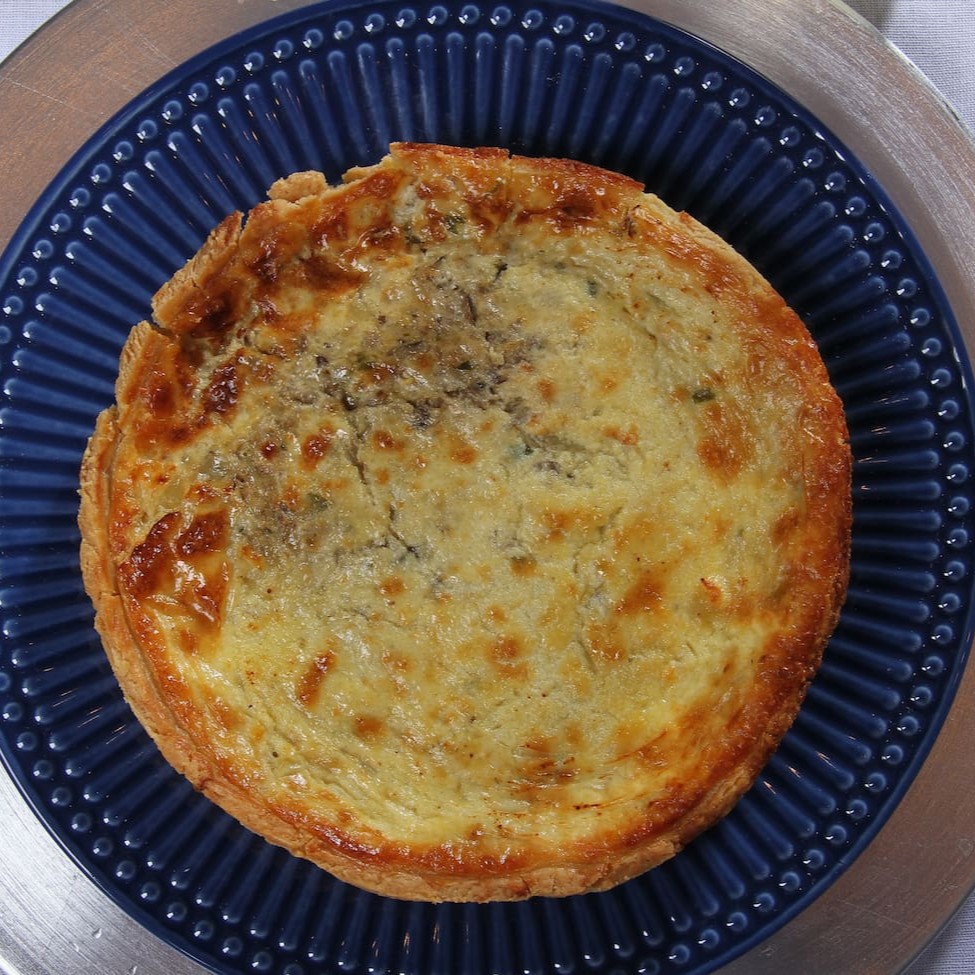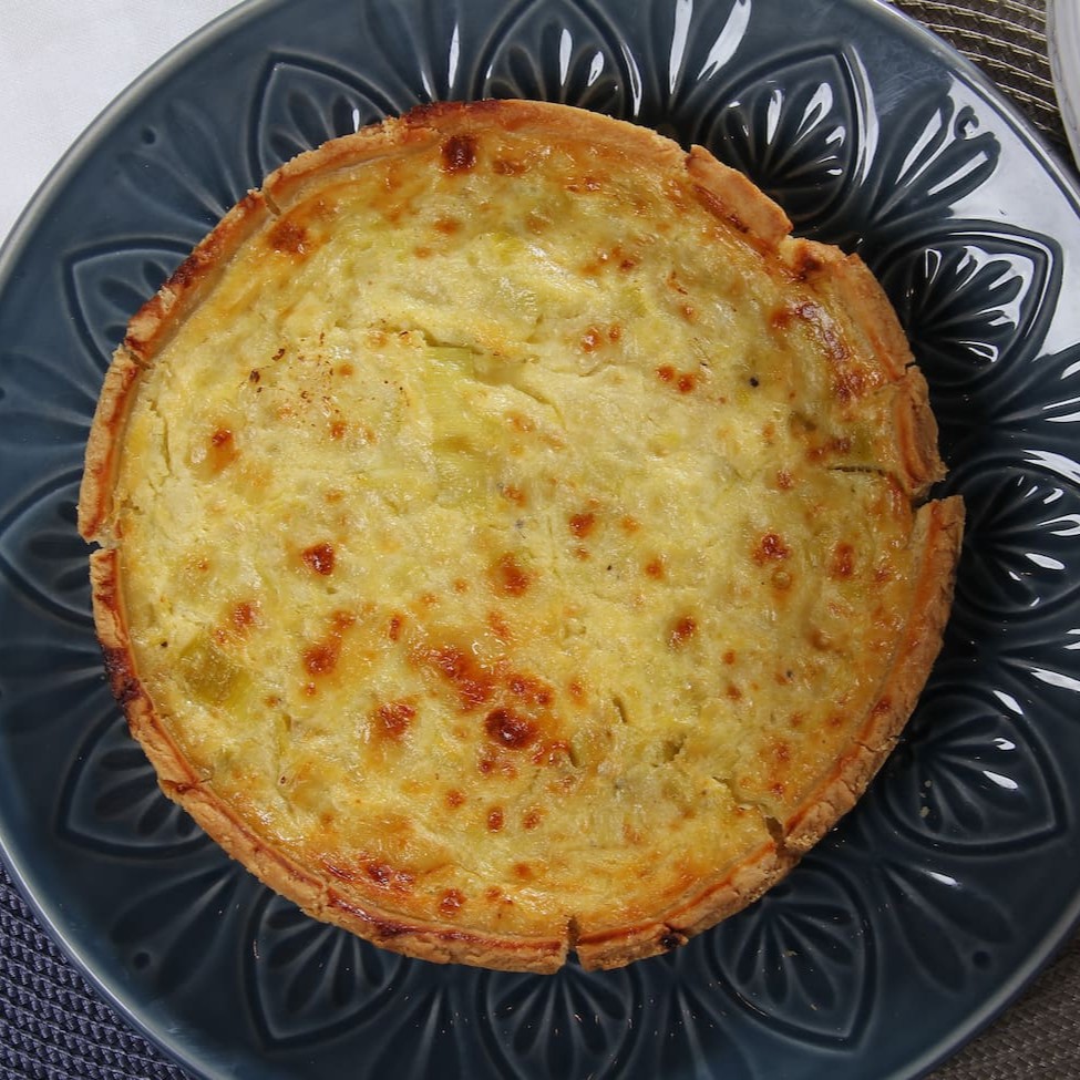 A quiche clássica acrescida de muito alho poró fatiado e salteado na pura manteiga de leite. 18cm e 600g.