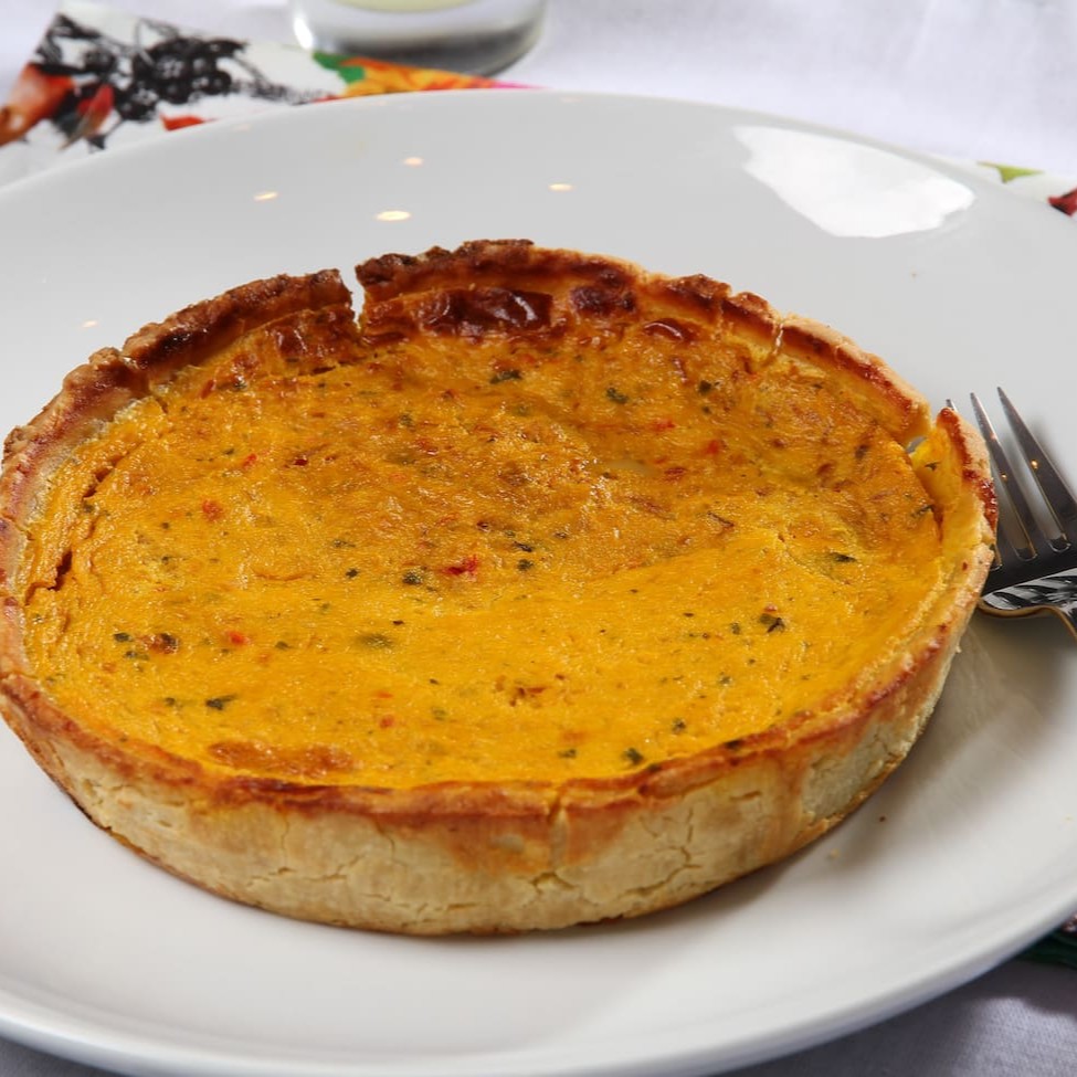 Nossa versão brasileira para a quiche, com uma deliciosa mistura de abóbora e carne seca. 18cm e 600g.