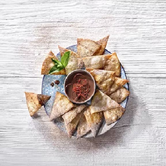 Tortilla de trigo tostada na chapa com queijo derretido, . Peso entre 350g . Contém lactose.