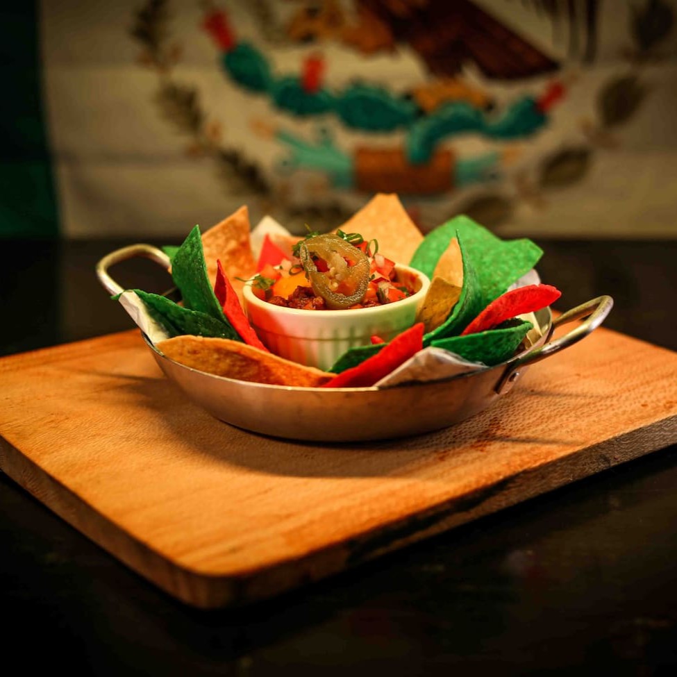 Nossa deliciosa tortilha de milho, acompanha os dois molhos mais pedidos: nossa deliciosa receita tradicional de guacamole e nosso chilli beans, Cheddar cremoso e sour cream Ideal como entrada e feito para compartilhar.