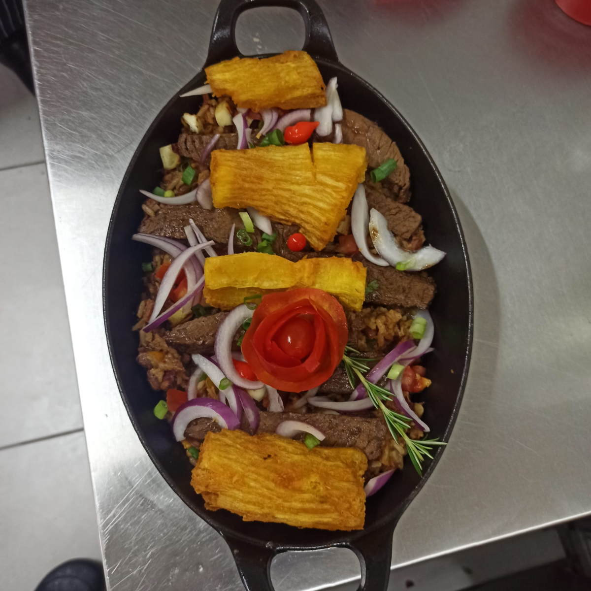 Acompanhamentos: Arroz branco soltinho, feijão, vinagrete, farofa e acompanhamento especial do dia