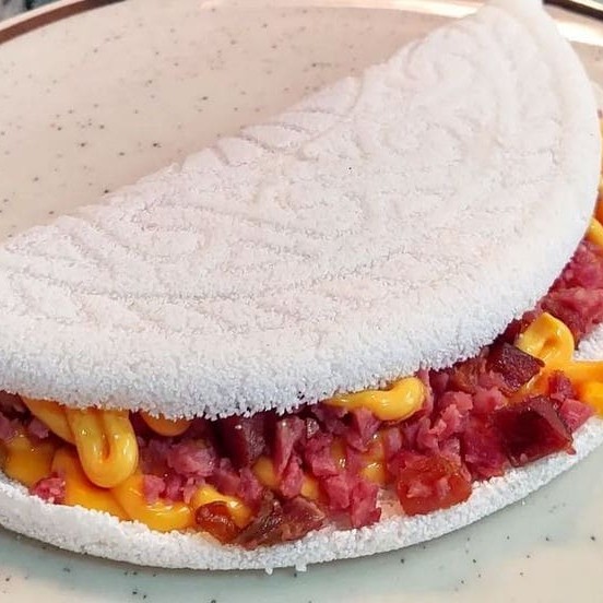 Deliciosa tapioca recheada com queijo e goiabada, uma combinação perfeita de sabores e emoções.