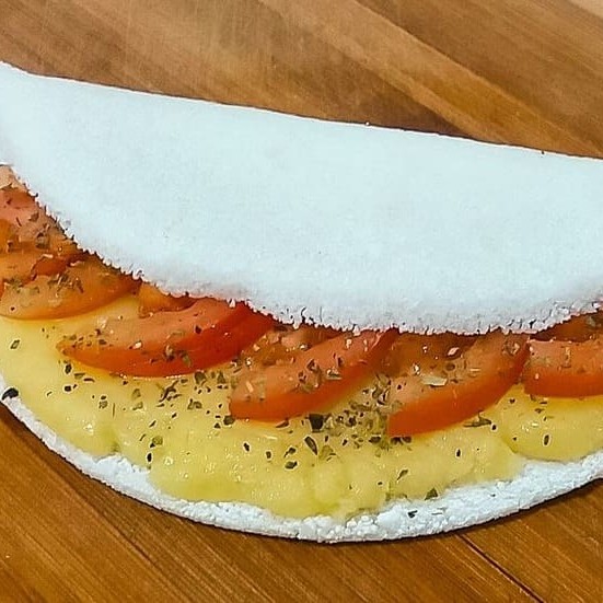 Tapioca de pizza: muçarela, tomate, orégano.