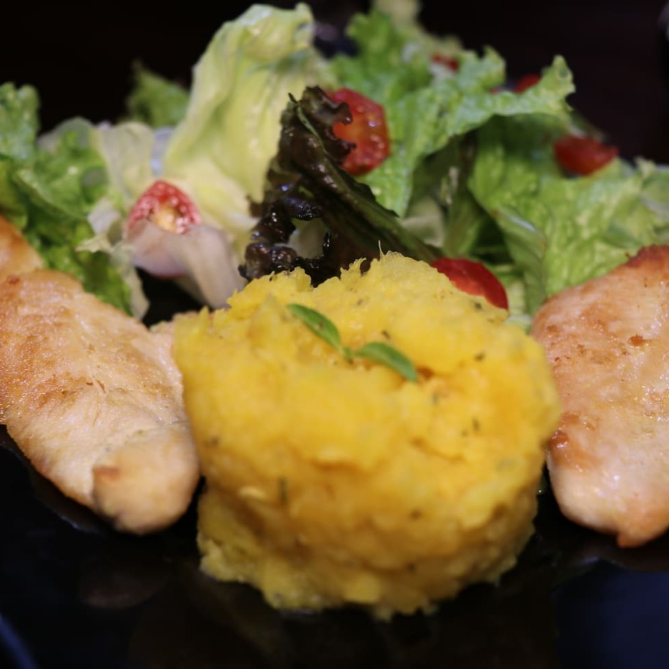 Delicioso Frango Grelhado Salada E Quibebe De Abóbora