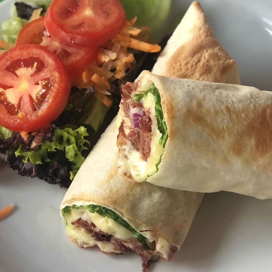 Delicie-se com nosso Wrap Nordestino, uma verdadeira explosão de sabores regionais. Este prato é cuidadosamente preparado com a mais suculenta carne seca, uma especialidade brasileira, realçada por generosas fatias de cebola roxa, que adicionam um toque de frescor e crocância. Para completar, a cremosidade do autêntico Catupiry e a irresistível mussarela derretida, que juntas criam uma combinação