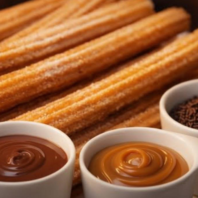 10 palitos de churros espanhol tradicional, acompanhado com 3 acompanhamentos!
