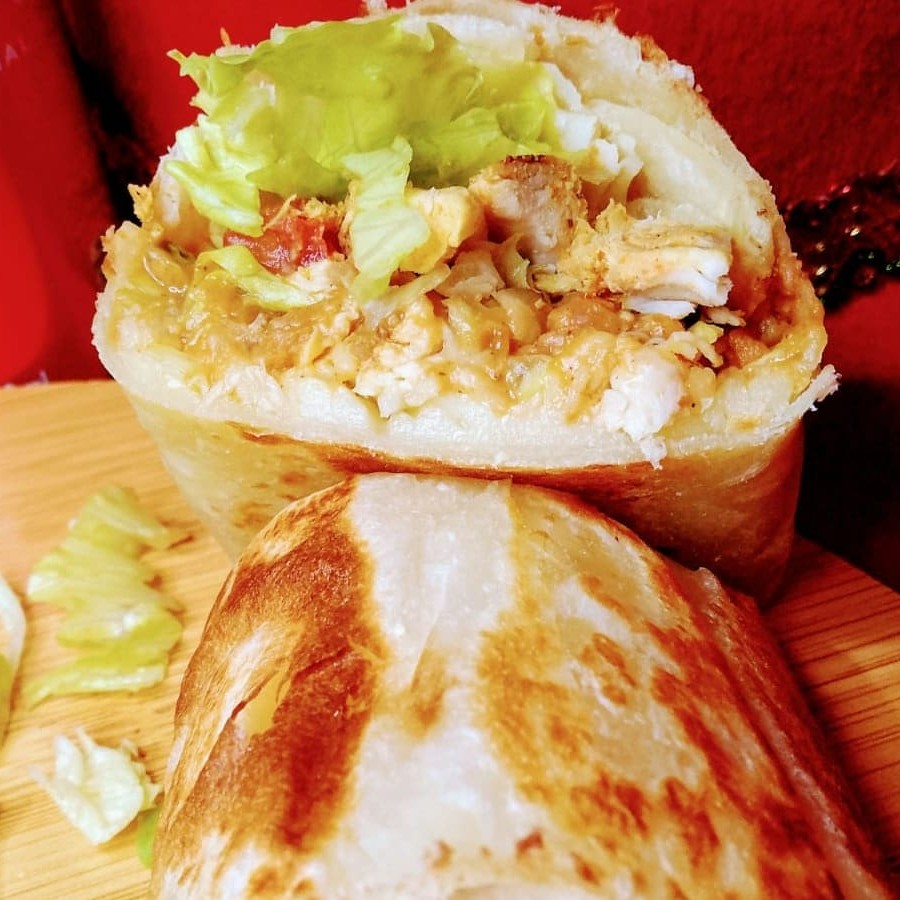 Tortilla recheada com: frango, queijo, frijoles, alface, tomate e guacamole. Acompanha: Sour Cream, Hot Salsa e Nachos.
