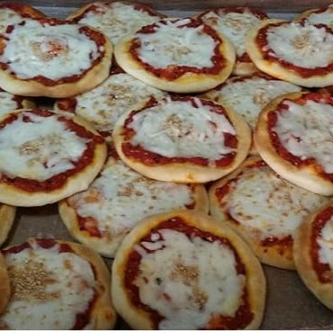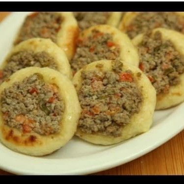 12 Esfihas Esfiha de muhamara (pasta de tomate e pimentão vermelho + cebola + tempero) + mussarela