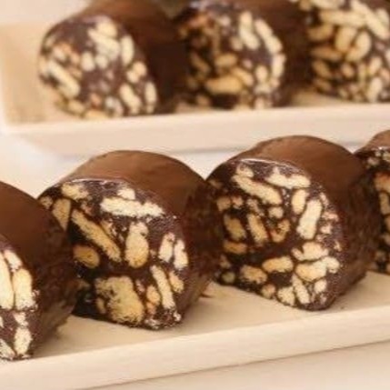 Doce gelado de biscoito maizena com chocolate 3 pedaço.