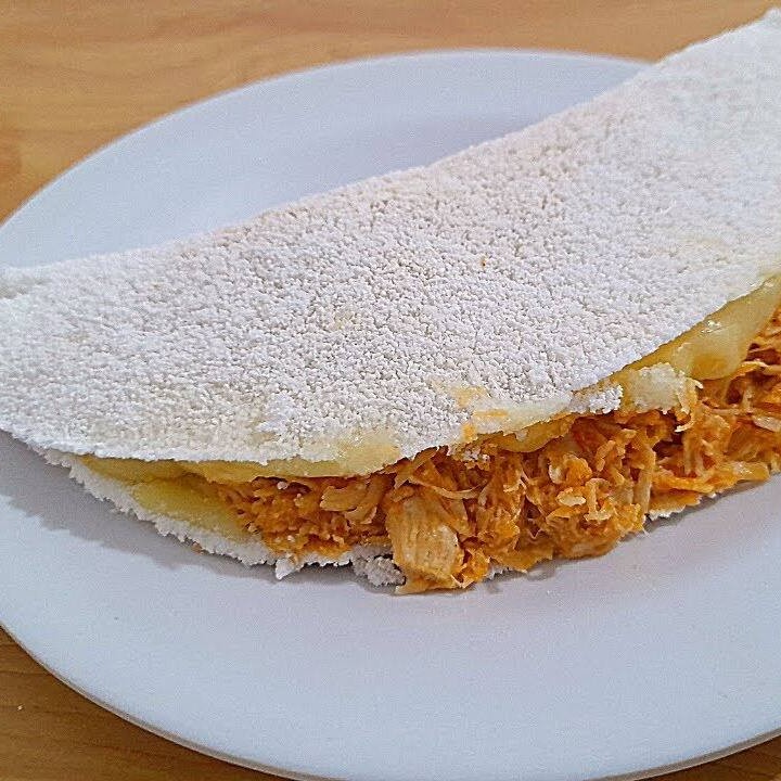 Crepioca frango desfiado com tempero da casa