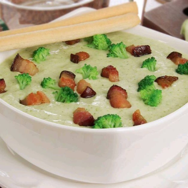 Uma combinação perfeita,feito com ingredientes naturais , é feito um creme do brócolis bem temperado com alho,sal,cebola,cheiro verde , juntamente com bacon bem fritinho e sequinho e finalizado com queijo mussarela simplesmente uma delícia acompanha torradinhas ou pãozinho cortado depende do Dia sempre estou vareando
