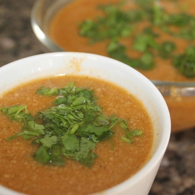 Caldo de feijão carioca cremoso preparado com alho, cebola, cheiro verde, feijão carioca, calabresa, bacon, louro, pimenta do reino, pimenta calabresa e azeite de oliva acompanhado pãonzinho cortado ou torrada estou Sempre vareando