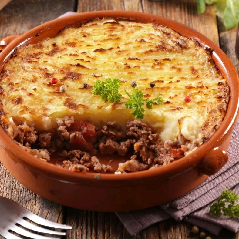Delicioso escondidinho de carne moída com base de batata e recheio de carne moída muito bem temperada finalizado com queijo