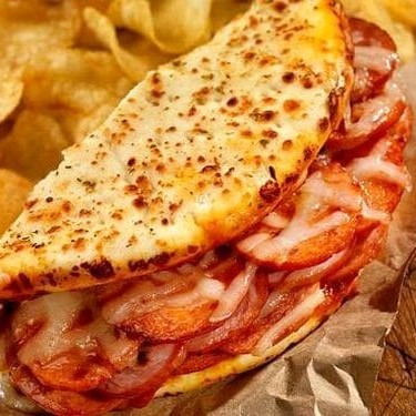 Crepioca de calabresa temperada com pedaços de tomate , orégano,azeitonas opcional
