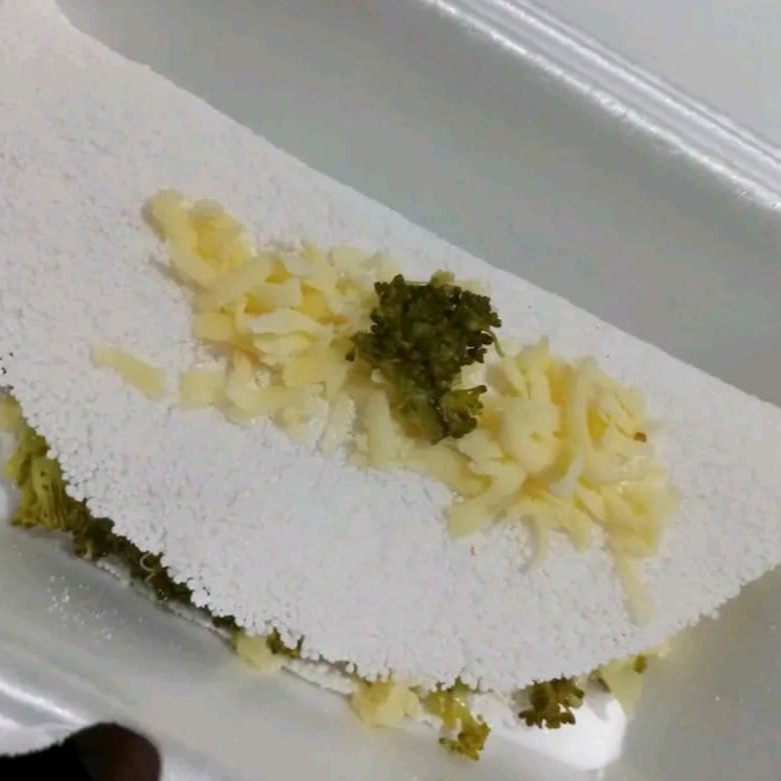 Deliciosa crepioca de brocolis bem temperado e queijo mussarela