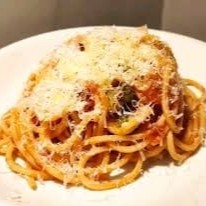 Delicioso espaguete com presunto e queijo no molho vermelho muito bem temperado com alho,cebola,cheiro verde finalizado com queijo ralado e oregano