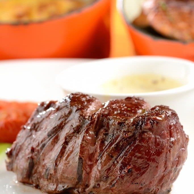 Coberto com molho de mostarda dijon, acompanha batata gratin aprox 200grs e (a quantidade da carne crua, pode variar dependo do ponto do corte) farofa crocante.