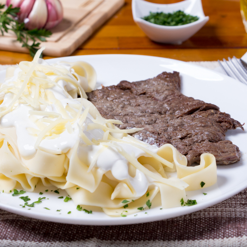Paillard De Filet Mignon 150 G Com Fettuciine Ao Molho Branco Ou Sugo.