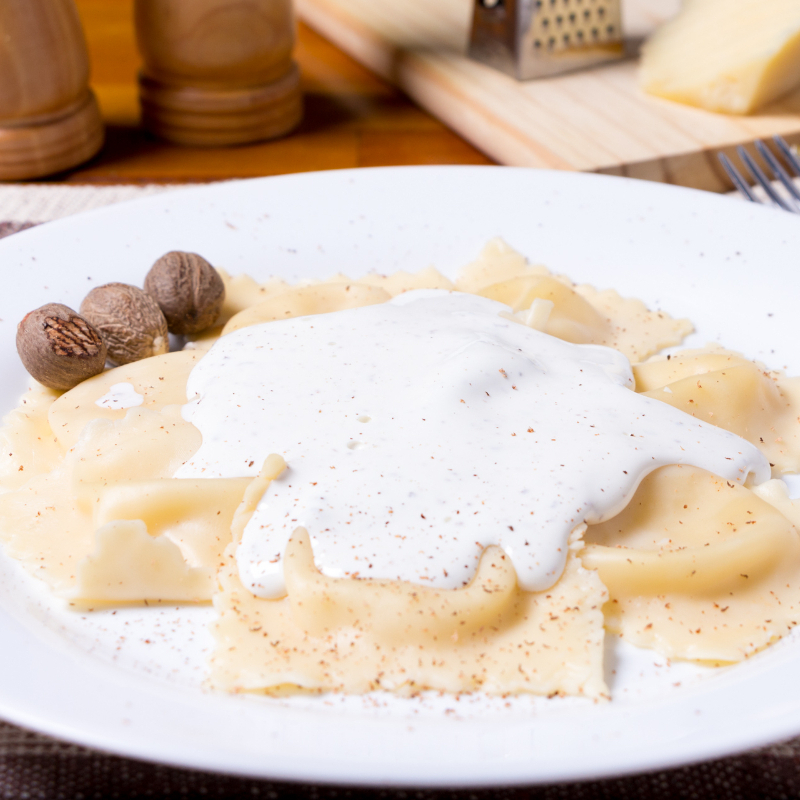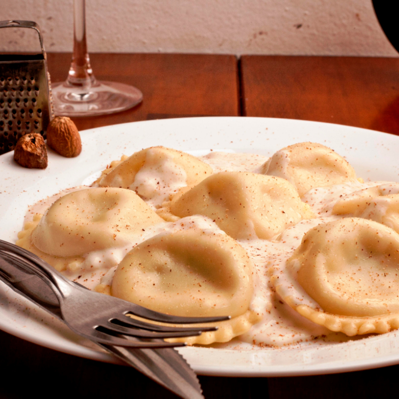 Ravioloni De Queijo Canastra Ao Molho Bechamel.
