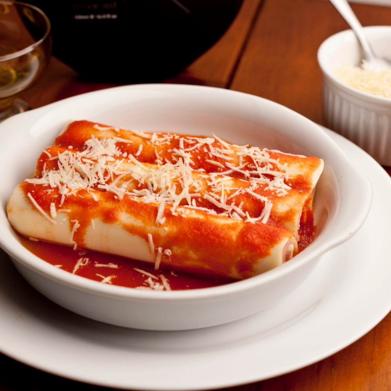 Cannelloni De Presunto E Queijo (ao Molho Sugo Com Manjericão Ou Molho Branco)