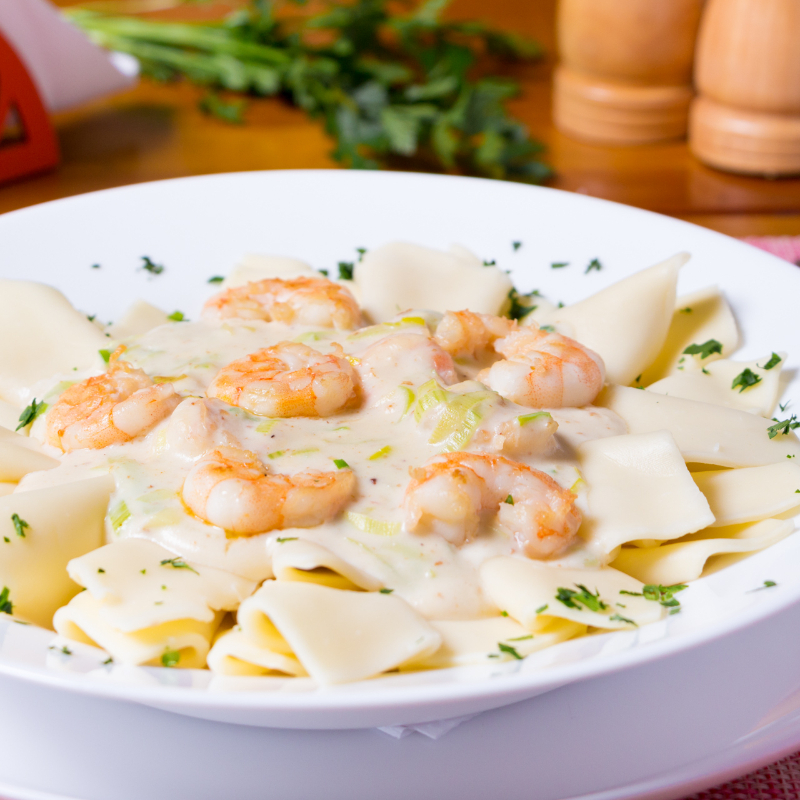 Lancette Com Camarões Ao Molho Sugo Ou Creme