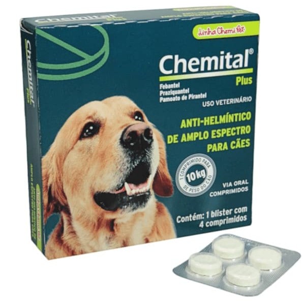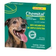 Vermifugo Chemital Para Caes Adultos 4 Comprimidos