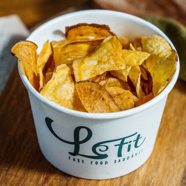 Porção de chips de batata doce.