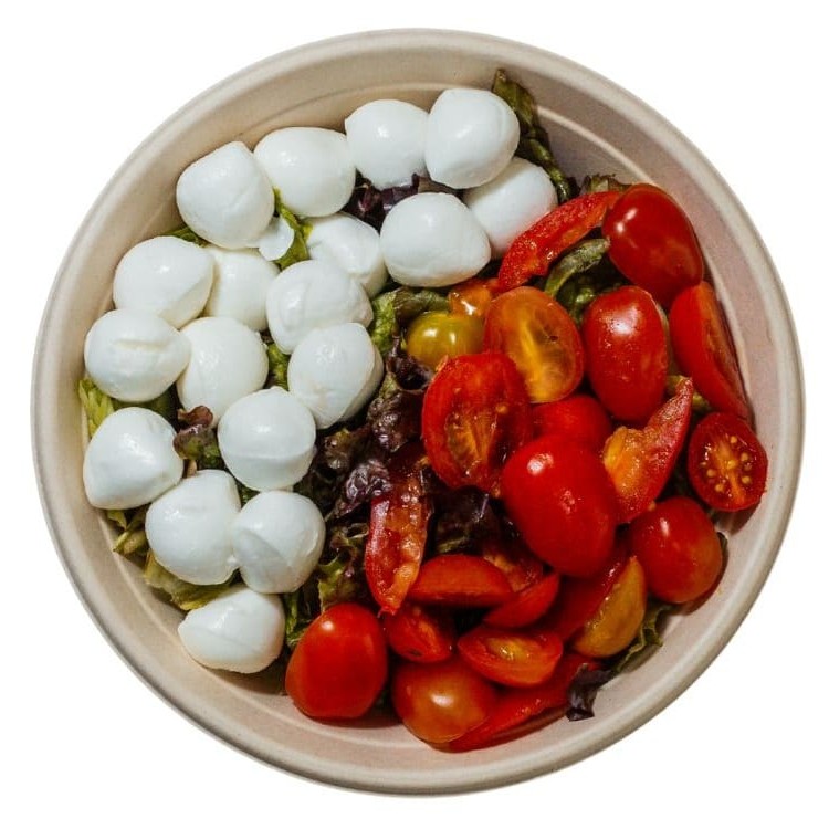 Mix de folhas, mussarela de búfala, tomate grape.