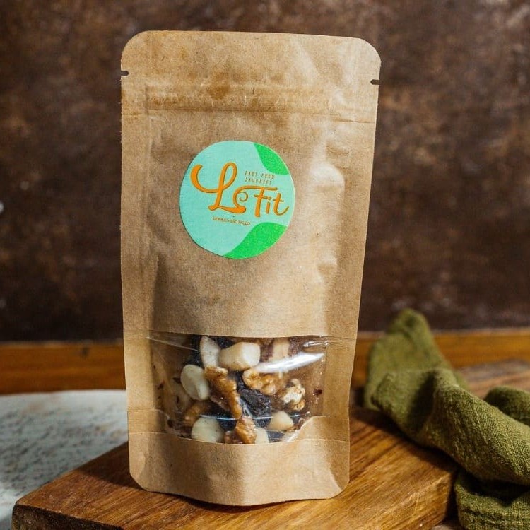 Mix com castanha de caju, castanha do pará, macadâmia, nozes e uva passa.