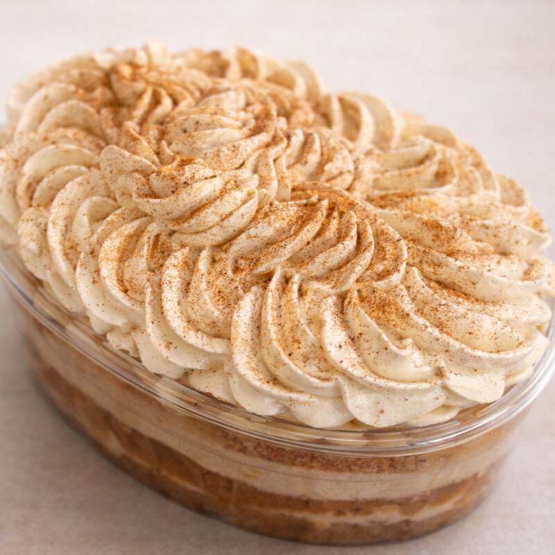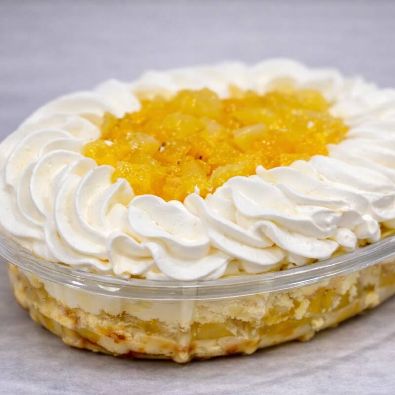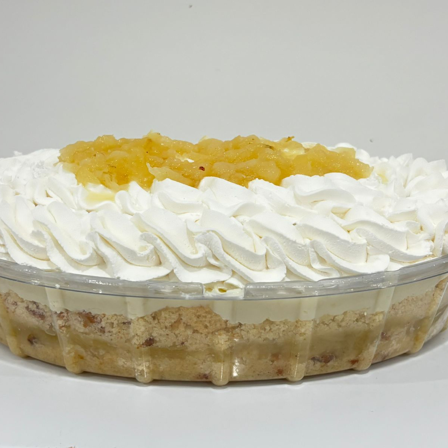 Sobremesa da Pascoa feita com camadas de bolo branco macio, com abacaxi fresco e cocada cremosa, finalizadas com chantilly, 1,2kg.