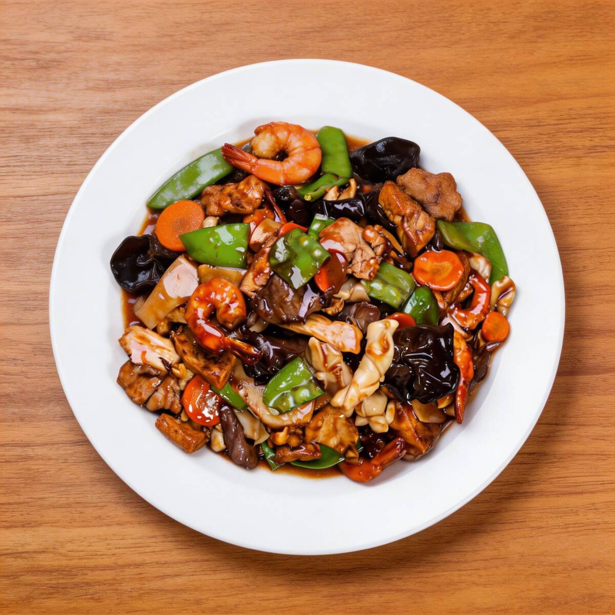 1 2 Frango Xadrez + 1 2 Arroz Chop-suey + 1 Rolinho + 1 Refri
