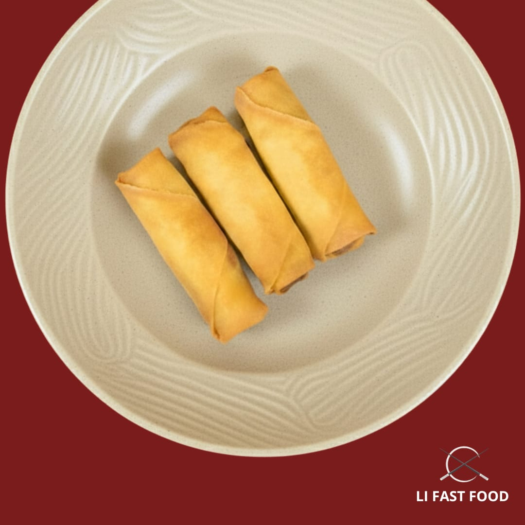 Rolinho primavera de legumes, também conhecido como harumaki, com massa leve e crocante. Feito na hora, sabor oriental autêntico. Ideal pra quem busca comida chinesa, vegetariana e delivery Li Fast Food.