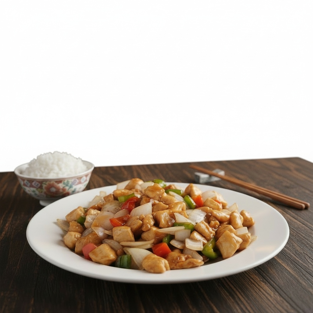 Frango xadrez suculento, com um toque de sofisticação, perfeito para quem busca uma refeição saborosa e equilibrada.