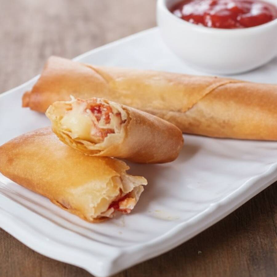 Rolinho primavera ou Harumaki, massa crocante recheado com queijo.