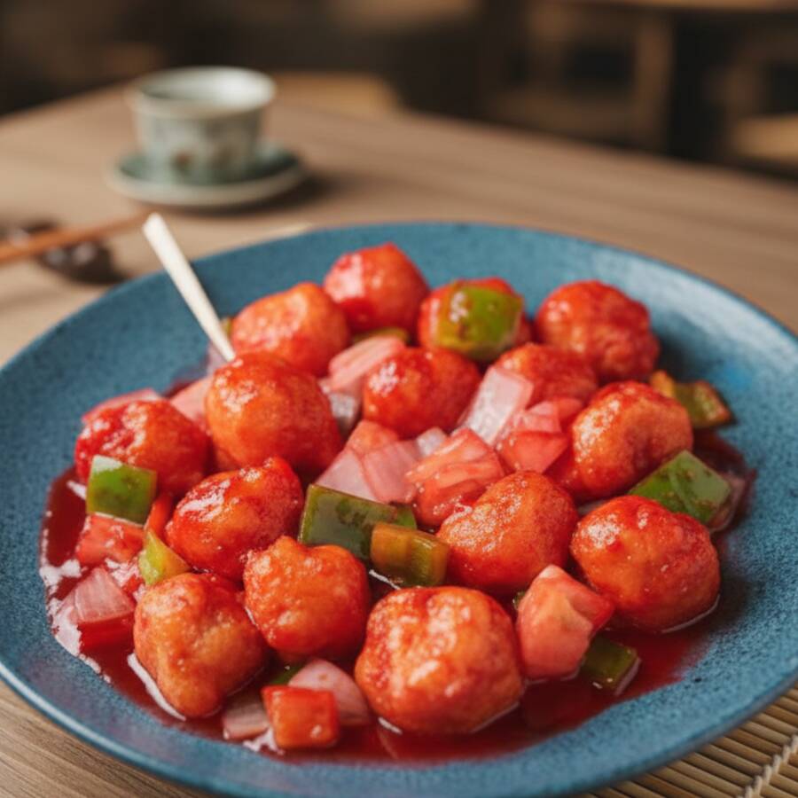 Cubos suculentos de lombo empanados e fritos combinados com pimentões verdes e vermelhos, cebola e pedaços de abacaxi ao molho agridoce. Preparado no wok chinês de forma artesanal com ingredientes frescos.