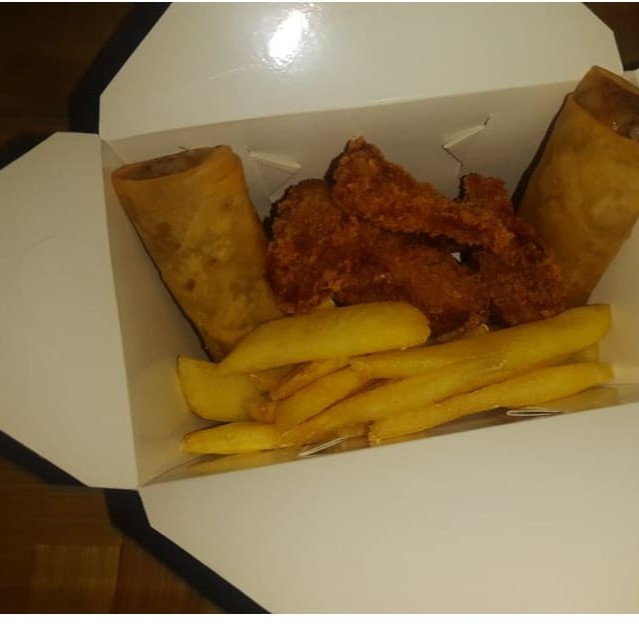 DELICIOSO YAKISOBA CLASSICO FEITO COM CARNE FRANGO E LEGUMES REGADO AO MOLHO ORIENTAL ACOMPANHADO DE + 2 ROLINHO DE QUEIJO + DUAS GUIOZAS + 5 HOT HOLL DE SALMAO + REFRI DE 200ML QUE VAI DE ACORDO COM A DISPONIBILIDADE DA LOJA