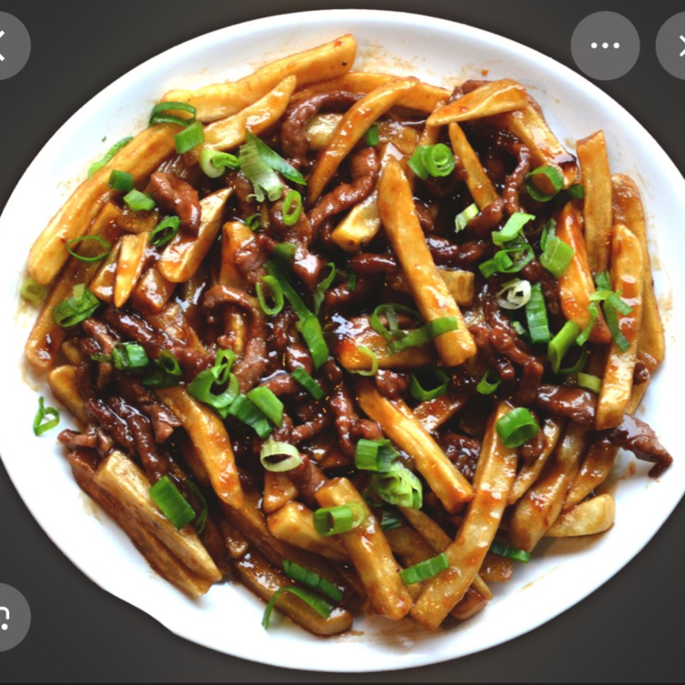 carne batata frita com molhos especial