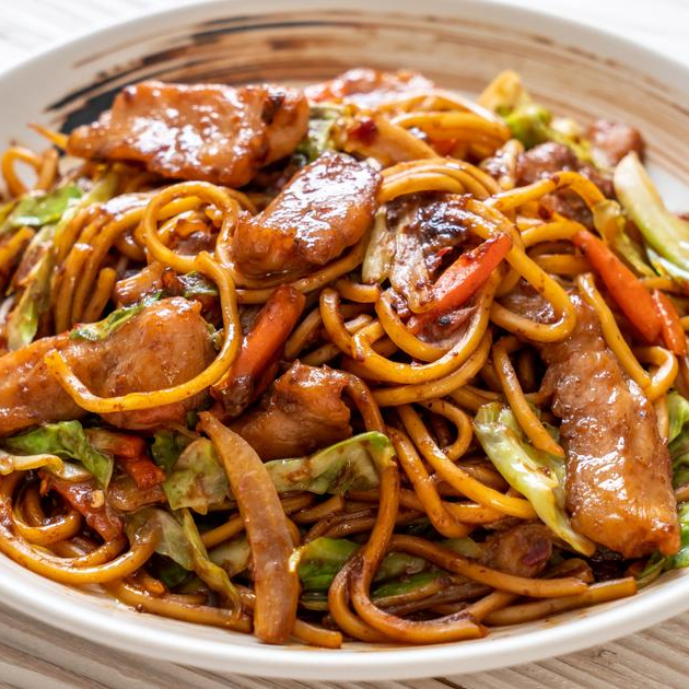 YAKISOBA CLASSICO PREPARADO COM DELICIOSO MACARRAO, CARNE E FRANGO ,REGADO AO MOLHO ORIENTAL COM UM SUTIL TOQUE DE MAIZENA PRA DAR AQUELA TESTURA DELICIOSA