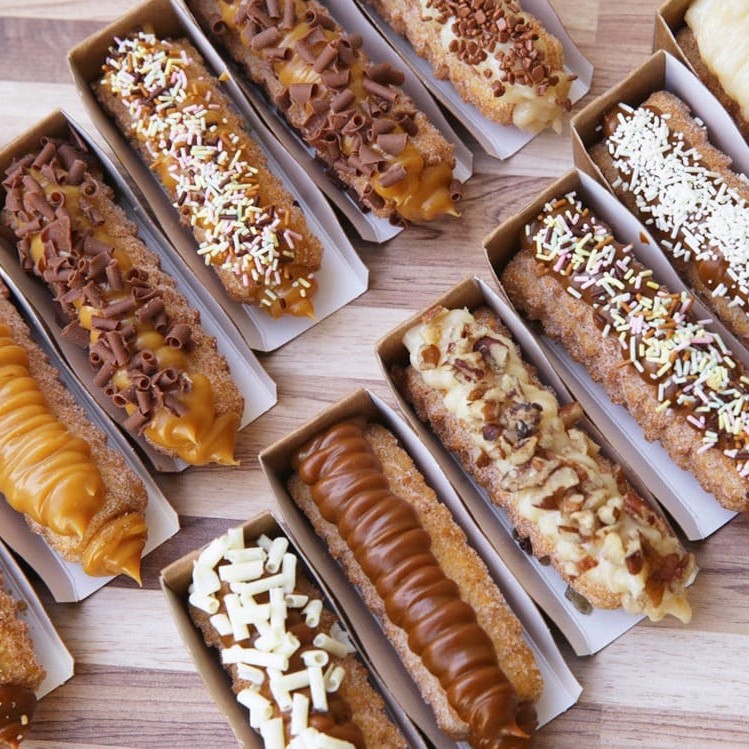 Os queridinhos churros gourmet, exageradamente recheado por dentro e por fora, com mais de 15 opções de coberturas, feito para quem tem um paladar refinado e exigente, perfeito para quem ama lima churros. A ideia é brincar com os recheios e coberturas, misturar e achar qual a sua melhor combinação.