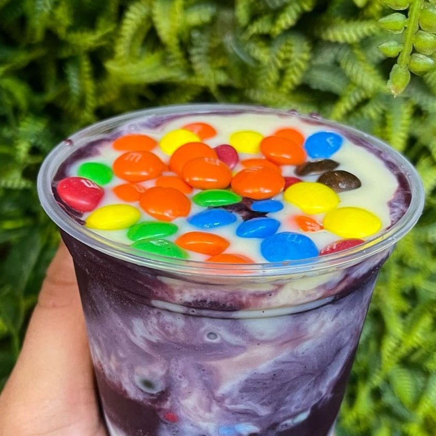 Maravilhoso Açaí com Leite Condensado Moça e M&Ms. Escolha o seu tamanho.