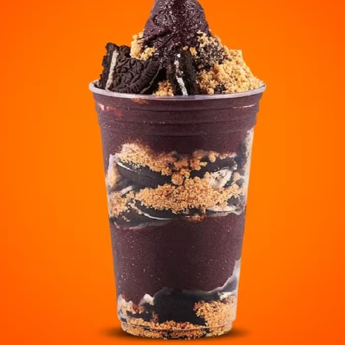 Maravilhoso Açaí, recheado de Creme de Ninho, Ovomaltine, Brigadeiro e Kinder Bueno.