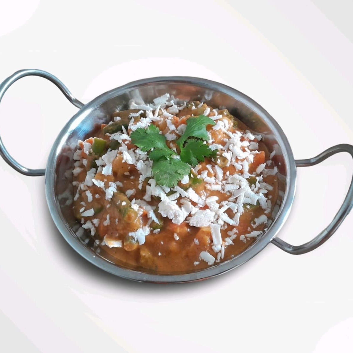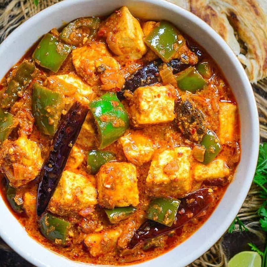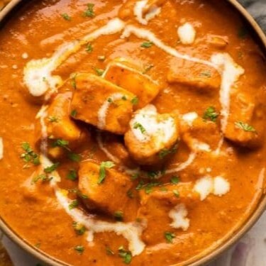 Um prato indiano clássico feito com cubos macios de ricota fresca cozidos em um molho espesso e rico de tomates, cebolas e pimentões. Temperado com uma mistura especial de especiarias aromáticas, como coentro e garam masala, este prato atinge um equilíbrio perfeito de sabor e textura. Combina bem com arroz naan ou basmati.
