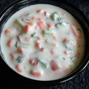 Uma combinação refrescante de iogurte cremoso com tomates e cebolas finamente picados, temperados com cominho torrado, uma pitada de sal e um toque de pimenta-do-reino. Finalizado com folhas de coentro fresco, este acompanhamento clássico traz um toque suave e equilibrado aos pratos indianos. Perfeito com biryanis, curries ou como um molho leve.