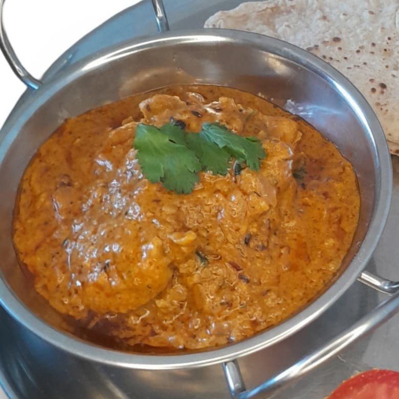 Uma criação luxuosa da culinária indiana, onde suculentos pedaços de frango são delicadamente cozidos em um molho aveludado e aromático, enriquecido com frango moído finamente. Combinado com especiarias selecionadas e tomates maduros, este prato oferece uma sinfonia de sabores intensos e texturas refinadas. Uma experiência verdadeiramente indulgente, ideal para ser apreciada com naan recém-saído d