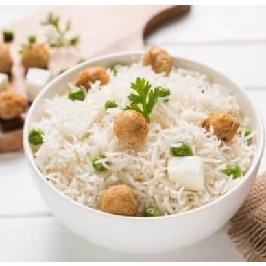 Arroz basmati aromático preparado com pedaços de soja ricos em proteína, levemente temperado com especiarias indianas. Uma opção saudável e saborosa, perfeita sozinha ou acompanhada de molhos e curries.