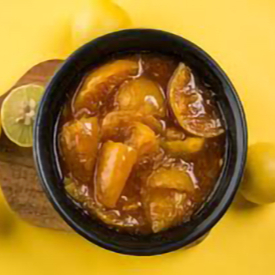 Um clássico da culinária indiana, preparado com limões suculentos, cozidos lentamente com rapadura, pimenta vermelha e especiarias aromáticas. Uma combinação perfeita entre o doce, o azedinho e o picante — um toque irresistível em qualquer refeição!