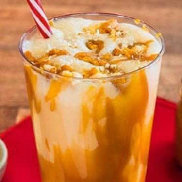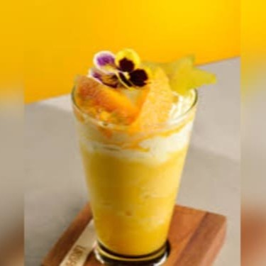 Nosso delicioso milkshake de frutas amarelas é feito com sorvete de creme e uma saborosa geleia de frutas amarelas naturais.