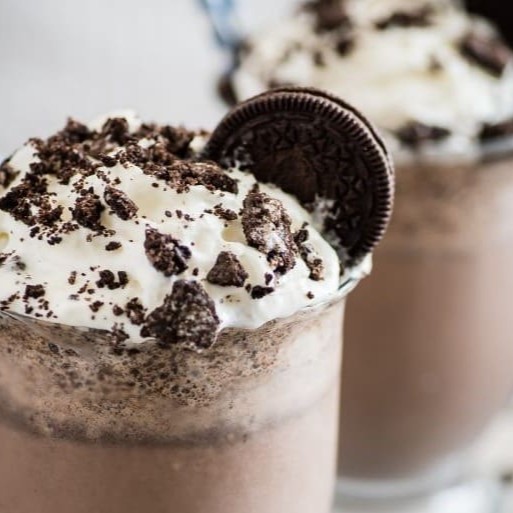 Nosso delicioso milkshake de Negresco é feito com sorvete de creme e uma base de Negresco.