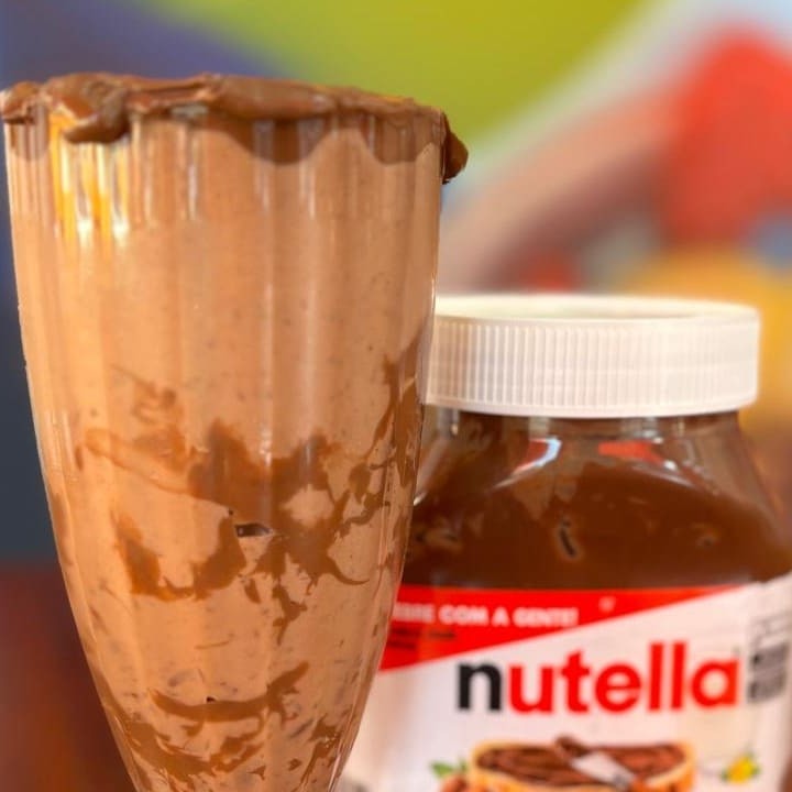 Nosso delicioso milkshake de Nutella é preparado com sorvete de creme e Nutella.
